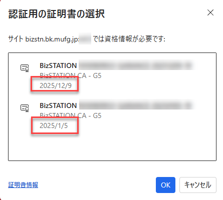 2. ログイン画面で電子証明書の選択画面が表示されます