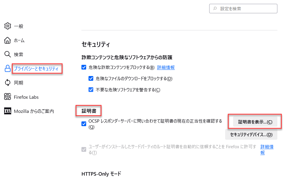 4. 「証明書」セクションの「証明書を表示」をクリック