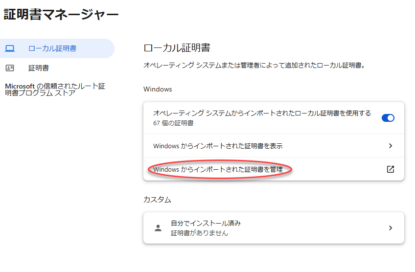 ここで疑問が湧きませんか?「EdgeでもChromeでも使えるということは、ブラウザの中に証明書が入っているわけじゃないの?」